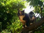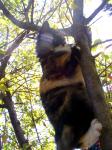 she sure loves her trees! but i keep her indoors from now on, so she can't climb anymore once she climbed up REALLY high! like im serious, a gigantic, tall, huge huge huge tree, and I was so scared and she tried to climb back down *bear hugging the tree and climbing backwards* but she slipped and fell and I didn't catch her (but she was ok!) and ever since then, I keep her indoors! Where shes safe ;) And the only climbing she gets up to is countertops...and my back x_x and does it ever hurt! but i love her anyway :)
